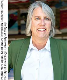 Dr. Carolyn Emery is a physiotherapist, epidemiologist, and Canada Research Chair focused on injury prevention and concussion in youth sport. Emery's research informed Hockey Canada's policy disallowing bodychecking in U12 hockey and non-elite older adolescent leagues. Emery chairs the Sport Injury Prevention Research Centre and co-leads UCalgary's Integrated Concussion Research Program and the UCalgary Concussion Research Centre, a transdisciplinary initiative integrating research, community-engagement, and clinical practice to reduce concussions and their consequences across the lifespan.