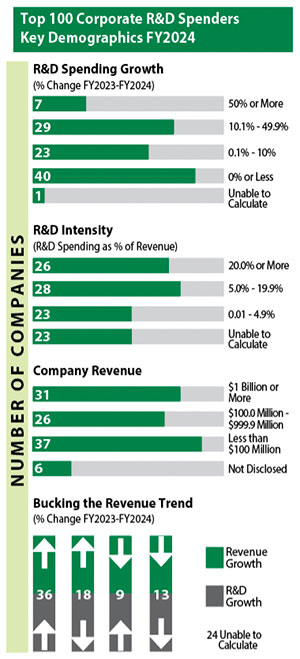 Last year, we forecasted that "economic and business conditions prevailing in Fiscal 2023 will drive R&D results for Fiscal 2024… to another strong round of spending". Clearly, events have proved us wrong. Based on the Fiscal 2024 results, the corporate sector is beginning to face economic headwinds for research, even though revenue growth was, on balance, positive. Most of our R&D spending indicators are down, or at best flat.